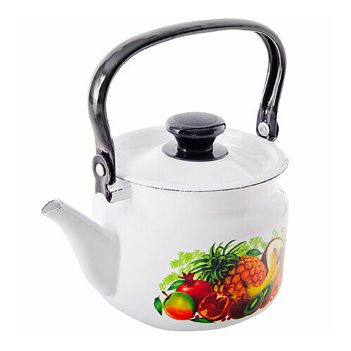 Чайник эмалированный 2 л бирюзовый, с рисунком фрукты, пищевой