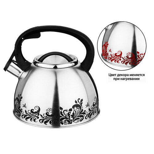Чайник со свистком AGNESS "красный узор" 2,5 Л нержавеющая сталь, индикатор нагрева, индукционное ДНО