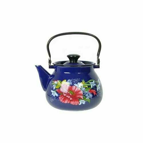 синий, темный, синийКак приятно сесть поуютнее в кругу семьи и выпить чашку свежезаваренного чая. Чайник эмалированный со свистком 2 л качественный, а главное безопасный. Безопасность - это едва ли не главный пункт в списке преимуществ эмалированной посуды. Вредные вещества при нагревании не выделяются. То есть эмалированный чайник абсолютно безопасен для здоровья. Чайник изготовлен из высококачественного стального проката с эмалированным покрытием. Внешние стенки оформлены ярким красочным изображением. Эмалированная посуда очень удобна в использовании, она практична и элегантна. За такой посудой легко ухаживать: чистить и мыть. При должном уходе такая утварь прослужит довольно долго. Для этого обращаться с ней надо бережно!Для повседневных дел и ритма деятельности, лучше выбирать чайник со свистком. Характерный свист оповестит вас о кипении воды. Это особенность позволяет заниматься своими делами и не стоять в ожидании над чайником. Приятным дополнением будет и то, что свисток у данной линейки чайников съемный. Обратите внимани