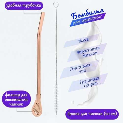 Бомбилья для чая Йерба Мате мини, l-18.5 см, с ёршиком, 9438114