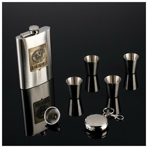 Подарочный набор 7 в 1 "СССР": фляжка 270 мл + 4 рюмки, воронка, брелок