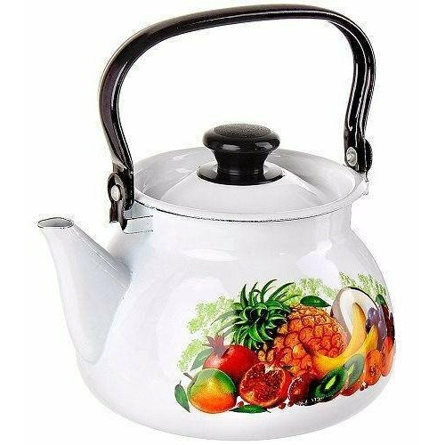 Чайник эмалированный 2 л бирюзовый, с рисунком фрукты, пищевой