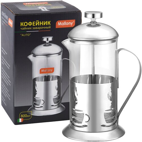 Френч-пресс Mallony Alito 950151, 800 мл серебристый 26 см 0.8 л