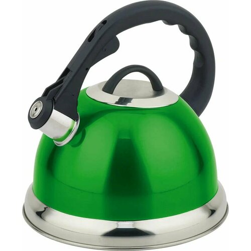 зеленыйЧайник 3,0 л. из нержавеющей стали со свистком. Капсулированное дно. Бакелитовая ручка со встроенным механизмом поднимания свистка. Подходит для всех типов плит. Толщина стенок - 0,4 мм. Зеркальное цветное покрытие корпуса. Цвет: зеленый