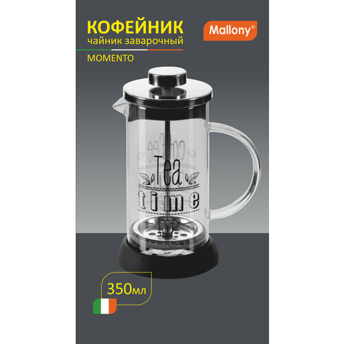 Френч-пресс Mallony Momento, 350 мл прозрачный/серебристый/черный 20 см 0.35 л