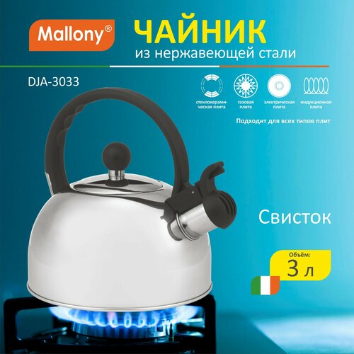 Mallony Чайник со свистком DJA-3033, 3 л, 3 л, серебристый