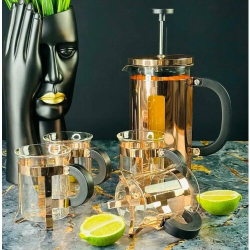 Френч-пресс 1000мл. и 4 стакана 200мл. в под. уп. Стекло 139-035 118-139-035