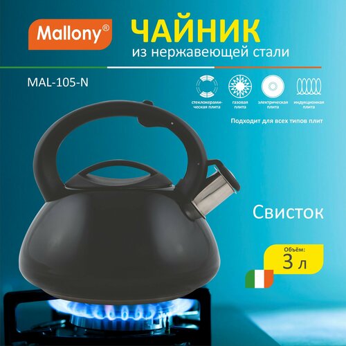 Mallony Чайник со свистком 910071/910092/910093/910094/910095, 3 л, 3 л, черный