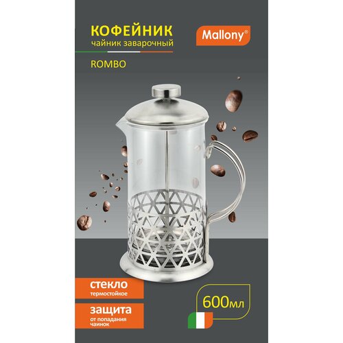 Френч-пресс Mallony Rombo (0.6 л) серебристый 21.6 см 0.6 л