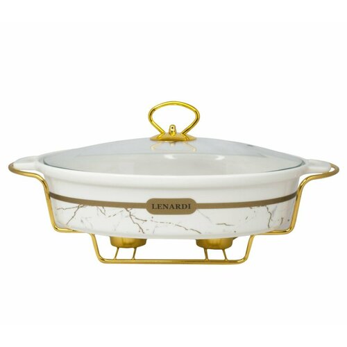 Овальный сервировочный мармит 38см с крышкой на подставке в под. уп. 133-354 118-133-354