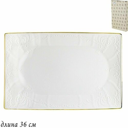 Блюдо сервировочное для кухни, прямоугольное, фарфор, 36 см Maria Gold, Lenardi