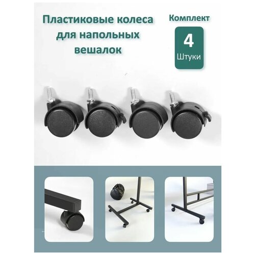 Комплект пластиковых колес 4 шт, для напольных вешалок и рейлов