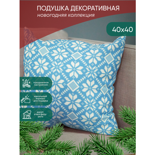Подушка Witerra Габардин СП Рождественский узор голубой 40*40