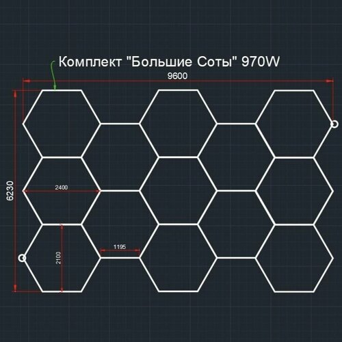 Модульное LED освещение 9.6х6.2м "большие соты" 970W/4000К тёплый свет AVstore. Светильник для детейлинга, автомойки, салона, гаража, коммерции, ресторана, барбершопа