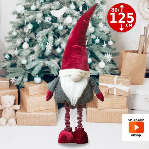 Большой новогодний Гном под елку Winter Glade F23125, высокий скандинавский гном на длинных телескопических ногах 80-125 см