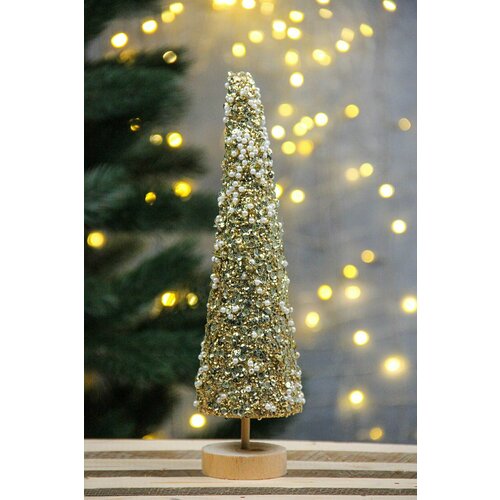 Новогодняя фигура Елочка конус на деревянной подставке 28см, золотой
