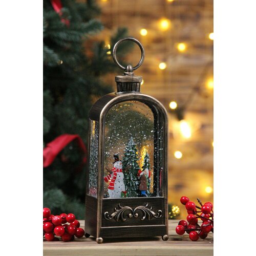 Новогодний музыкальный фонарь со снегом и светом и блестками