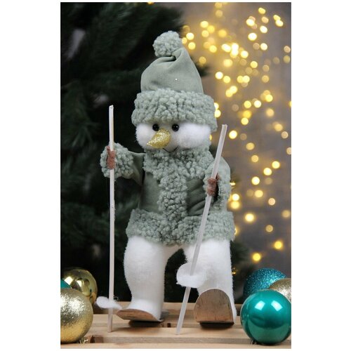 Новогодняя игрушка под елку "Снеговик на лыжах" 30 см