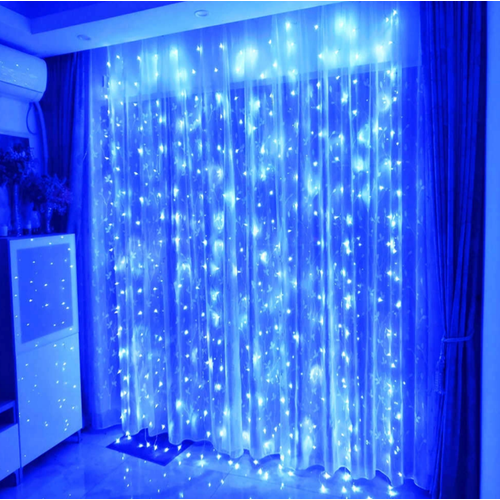 Гирлянда на Новый Год штора 3x3 метра, светодиодная, занавес, гирлянда от идея, интерьерная, хит тиктока, синий свет