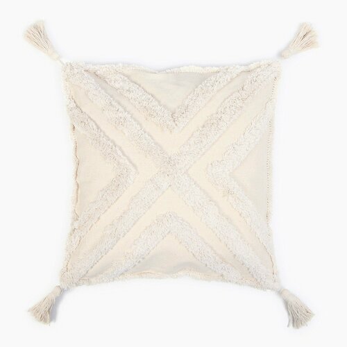 Наволочка декоративная «Этель» Бохо, 45х45 см, цвет молочный, 100% хлопок