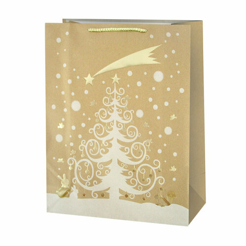 Пакет подарочный, Крафт, Новогодняя сказка, Дизайн № 1, Металлик, 42*31*12 см, 1 шт.