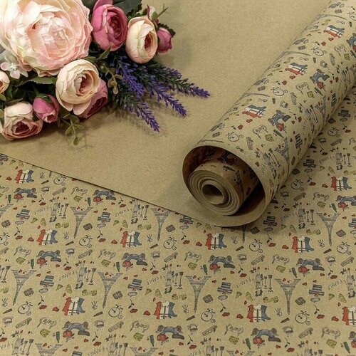 Упаковочная бумага, Крафт 70гр (0,7*10 м) Экошик, Французские мотивы, 1 шт.
