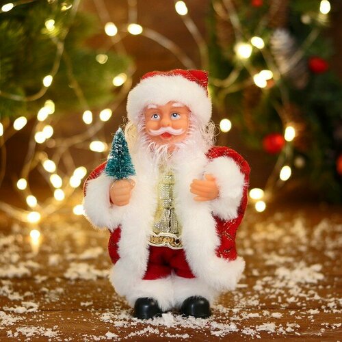 Дед Мороз "В узорчатой шубке с ёлочкой" 19 см, бело-красный