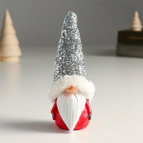 Сувенир полистоун "Дедушка Мороз в красной шубе, колпак с мишурой" 4,5х4х14 см