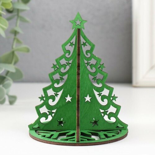 Фигурка на подставке "Елка 3D" зеленая 8х10 см (набор 3 детали)