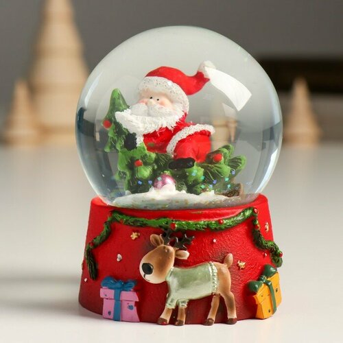 Сувенир полистоун водяной шар "Дед Мороз верхом на ёлке" 7х8х9 см