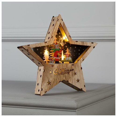 Светодиодная фигура "Звезда с новогодним оленем" 22 x 22 x 4 см, дерево, батарейки АААх2 (не в комплекте), свечение тёплое белое