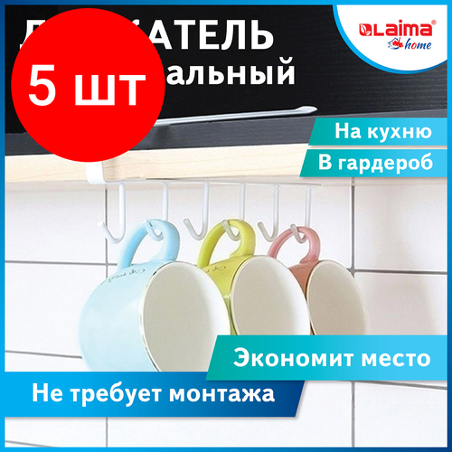 Комплект 5 шт, Органайзер для шкафов и полок с 6-ю крючками подвесной, металлический, LAIMA HOME, 608002