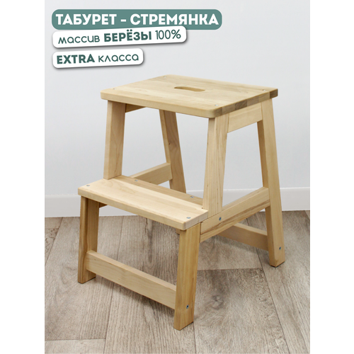 Табурет-стремянка из 100% массива дерева SKOGUR / Табурет деревянный для кухни и ванной, 2 ступеньки.