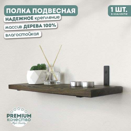 Полка деревянная настенная из массива березы SKOGUR темная 50 см для книг для ванны, полки на кухню