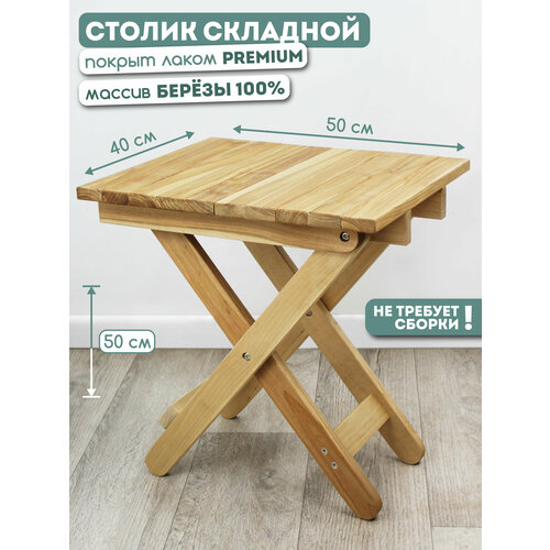 Стол журнальный 60х50 высота 63, складной деревянный для дома, для улицы, бани, на балкона, покрыт лаком Premium