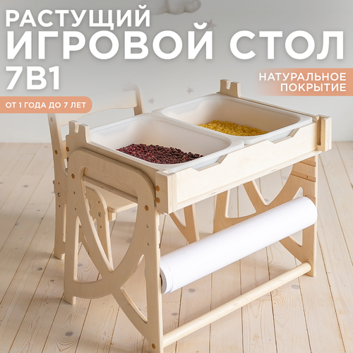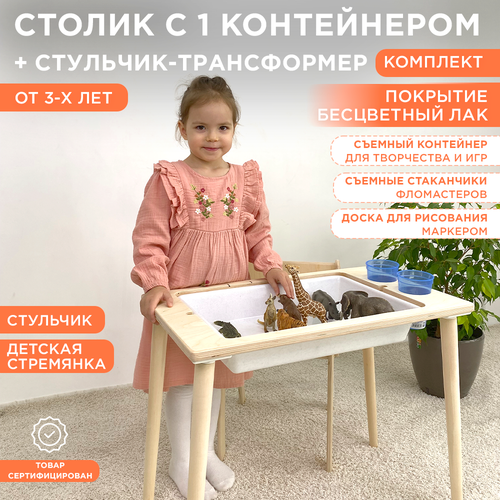 Стол развивающий с контейнером и стульчик трансформер флисат лакированный