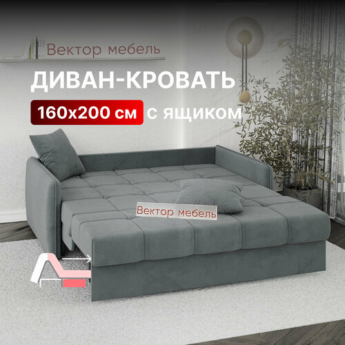 Диван-кровать Вектор Валенсия с ящиком, велюр, аккордеон, 190x96x108см