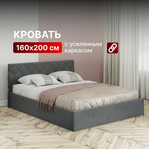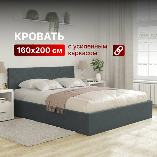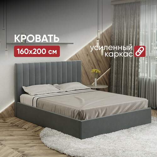 Кровать 160х200 c подъемным механизмом двуспальная Джоли с ортопедическим основанием и ящик для белья, велюр темно-серый