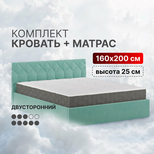 Кровать с матрасом высотой 25см, кровать 160х200 c подъемным механизмом и бельевым ящиком Техас темно-серый