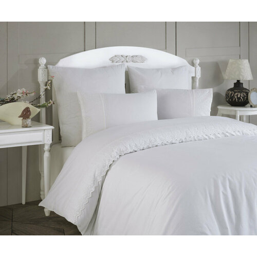 Комплект постельного белья EFOR RANFORCE (GUZ NG-24) KREM гипюр евро, ранфорс