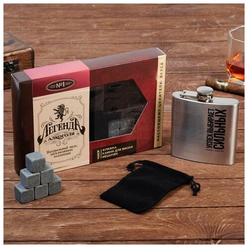 Дорого внимание Подарочный набор "Легенда алкоголя", фляга, камни для виски, мешочек