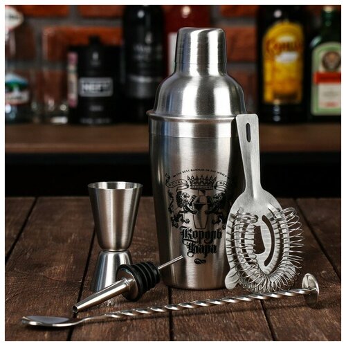 Набор для приготовления коктейлей «Король бара», гейзер, джиггер, шейкер 600 мл, стрейнер, ложка