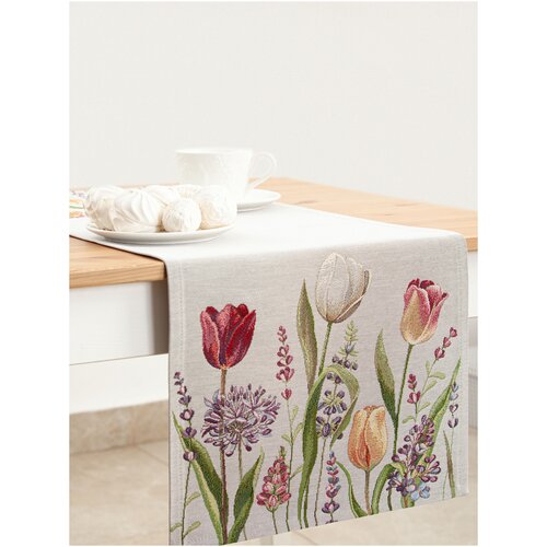 Дорожка для стола Le Gobelin Тюльпаны моей любимой серый фон 45х140 см