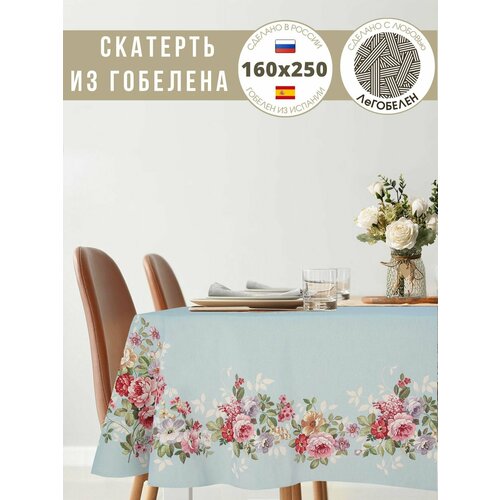 Скатерть Le Gobelin Принцесса цветов бирюзовый фон овальная 165х250 см