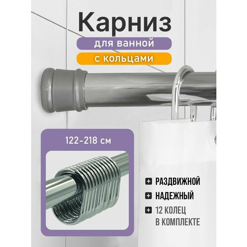 Карниз для ванной 122-218 см (хром) Bath Plus c кольцами 12 шт