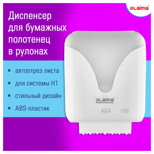Диспенсер для полотенец в рулонах с автоотрезом листа LAIMA PROFESSIONAL ULTRA, (Система H1), 607765, 303052
