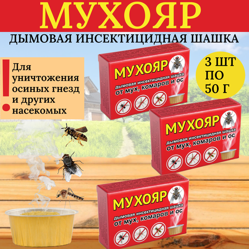 Ваше хозяйство Мухояр дымовая шашка от мух, комаров и ос 50 г, 3 шт