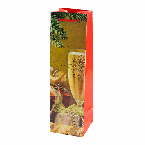 Пакет подарочный для вина, Праздничное настроение, Дизайн №1, Металлик, 38*11*11 см, 1 шт.