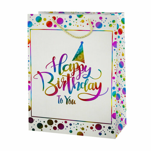 Пакет подарочный, С Днем Рождения (радужный перелив), Дизайн №2, Металлик, 41,5*30*12 см, 1 шт.