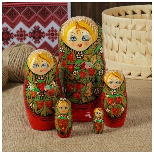Матрешка деревянная Хохлома, 5 мест, 18см / Развивающие детские игрушки